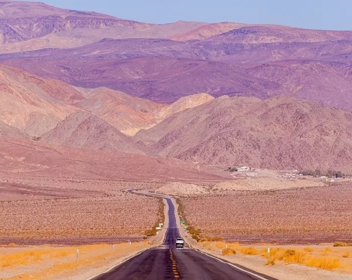 Du kan velge å kjøre en naturskjønn avstikker gjennom en av USAs største nasjonalparker, Death Valley. Dette området er kjent for sine høye temperaturer som kan komme opp i over 50 °C og fascinerende, golde landskaper.