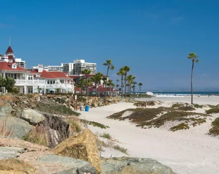 Fra Coronado Island har du flott utsikt til San Diegos Downtown, og den hyggelige halvøya er bl.a. kjent for sine vakre strender og det historiske Hotel Del Coronado som ble brukt i filmer med stjerner som Marilyn Monroe.