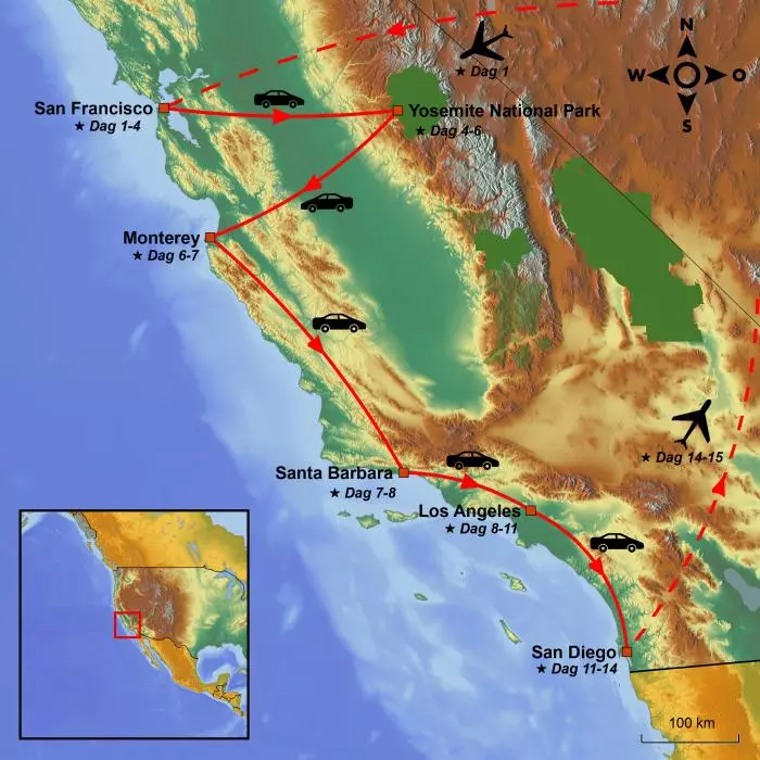 Oppdag Californias flotteste storbyer og natur, fra nord til sør: San Francisco, Yosemite, Highway 1 og Los Angeles. Reisen avsluttes i strandbyen San Diego.