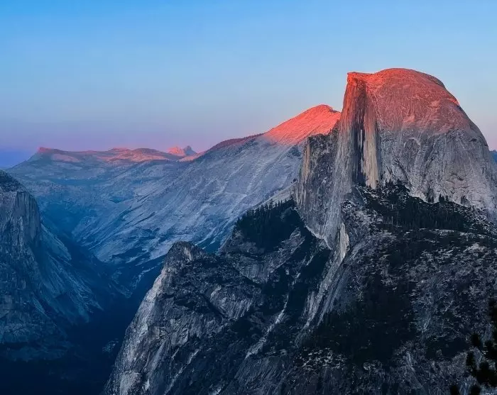 I sommermånedene, når snøen er smeltet, er Glacier Point et av de utsiktspunktene du ikke må gå glipp av. Du kan kjøre hit opp med bil, eller du kan bestille en busstur (bestilles direkte i parken etter først-til-mølla-prinsippet). Hvis du har lyst til å gå en tur fra utsiktspunktet, kan du også ta en shuttlebuss opp og gå ned via Four-Mile-Trail. På Glacier Point kan du oppleve en helt spesiell solnedgang akkurat i det øyeblikket solen kaster et oransje skjær over det store fjellet Half Dome.