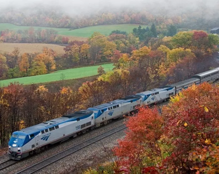På Penn Station i New York setter du deg på toget igjen, denne gangen på en litt lengre etappe på 4,5 timer. Senk skuldrene på den avslappende togturen med en bok, eller lytt til musikk mens landskapet suser forbi.*
