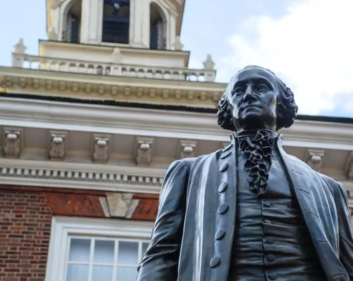 Det sies at det amerikanske flagget ble unnfanget her i Philadelphia. I Betsy Ross House kan du høre historien om Betsy, som sydde det første amerikanske flagget som senere ble presentert for den første presidenten i USA – George Washington.