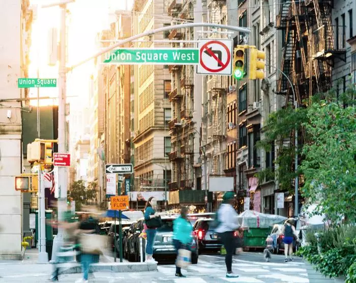 Du forlater Philadelphia fra samme togstasjon som du ankom byen på*, og bare 1,5 timer senere kan du gå av toget på Penn Station – midt i New Yorks myldrende gateliv.
