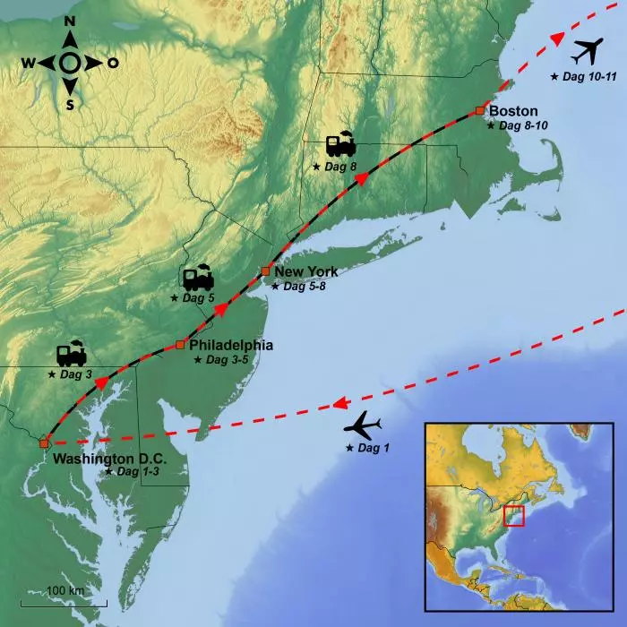 Bli med på en spennende togreise som tar deg gjennom noen av de viktigste stedene i verdenshistorien – både historisk, politisk og kulturelt. Reiseruten er enkel, der du tar toget til sentrum av fire ulike byer på den amerikanske østkysten: Washington D.C., Philadelphia, New York City og Boston.