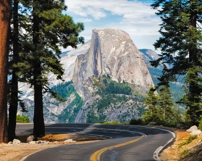 Når du nærmer deg parken (via Arch Rock Entrance), får du oppleve hvordan byens liv gradvis erstattes av golde landskaper og etter hvert fjell: Sierra Nevada-fjellene, hvor Yosemite ligger. Den siste timen med kjøring inn i selve Yosemite Valley er ubeskrivelig vakker, med loddrette fjellvegger, grantrær og den turbulente elven Merced River, som følger deg hele veien.