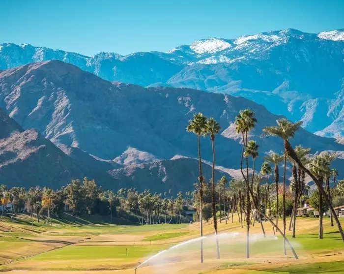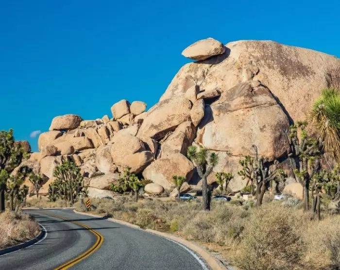 I Palm Springs kjører du gjennom en ørkenby der palmer pryder gatene. Byen er populær blant velhavende amerikanere som har ferieboliger her. Berømtheter som Elvis, Marilyn Monroe, Frank Sinatra og Dean Martin er bare noen av stjernene som har hatt hus i byen. Boligene kan man fremdeles se (utenfra) den dag i dag. Fra Palm Springs kan du velge å fortsette til Joshua Tree nasjonalpark. Nasjonalparken har vakre utsikter til et tilsynelatende uendelig ørkenlandskap. Det røffe landskapet står i vakker kontrast til de grønne kaktusene og den blå himmelen.