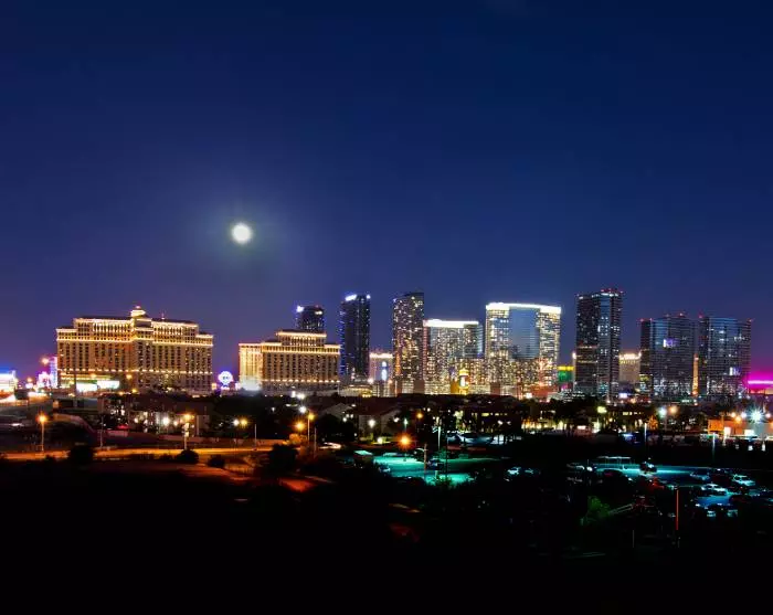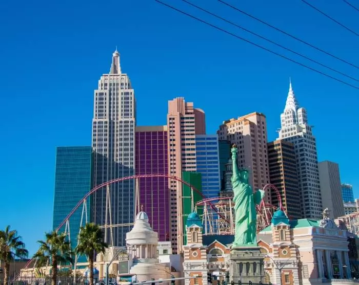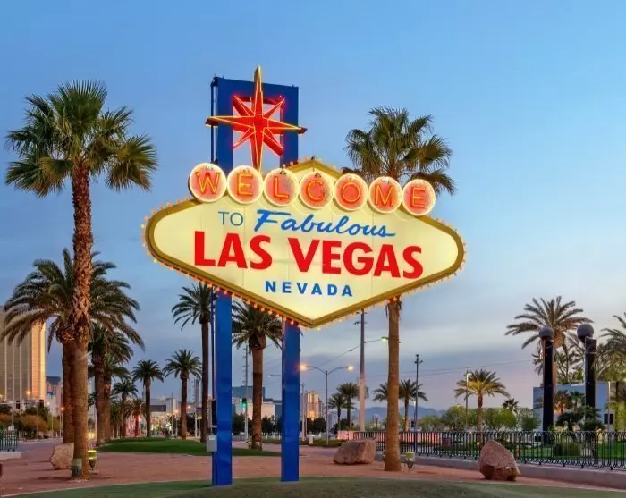 Etter hvert som du nærmer deg Las Vegas vil ørkendisen bli avløst av gigantiske temahoteller som ligger side ved side på den knapt 7 km lange Las Vegas Bldv. Kanskje bedre kjent som The Strip.