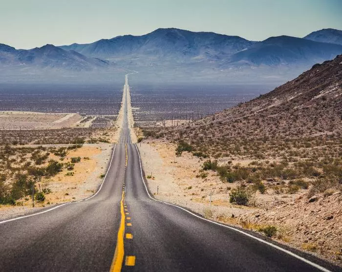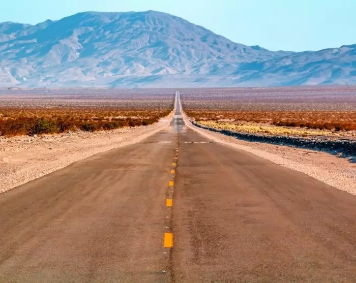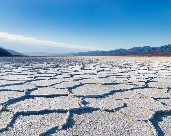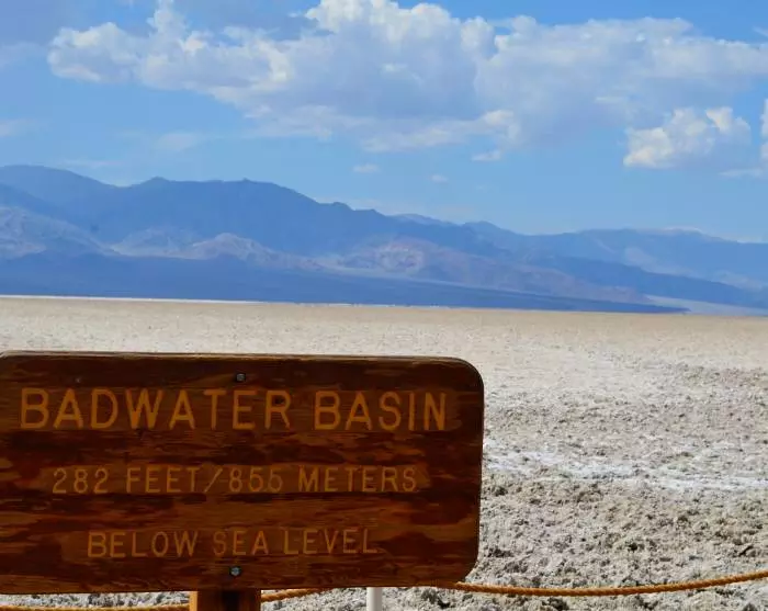 Du kan velge den litt lengre ruten, der du kjører gjennom Death Valley, en av USAs største nasjonalparker, kjent for sine ekstreme temperaturer på over 50 °C. Her vil du se at ørken består av mye mer enn endeløse rekker av sanddyner. Ved Badwater Basin ligger det en enorm saltslette som også er USAs laveste punkt. Faktisk ligger den 86 meter under havoverflaten.