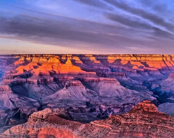Denne delen av Grand Canyon, South Rim, er eid av den amerikanske staten, og store penger er investert i å anlegge stier og bygge gjerder ved mange av de store utsiktspunktene. Med eller uten gjerde: følelsen av å stå i første rekke ved Grand Canyon er helt unik. Du føler hvordan det kiler i magen når du står på kanten av et av verdens sju naturlige underverker. Gå ikke glipp av en solnedgang i verdensklasse og en flott fargeeksplosjon som farger himmelen foran deg ved bl.a. Mather Point.