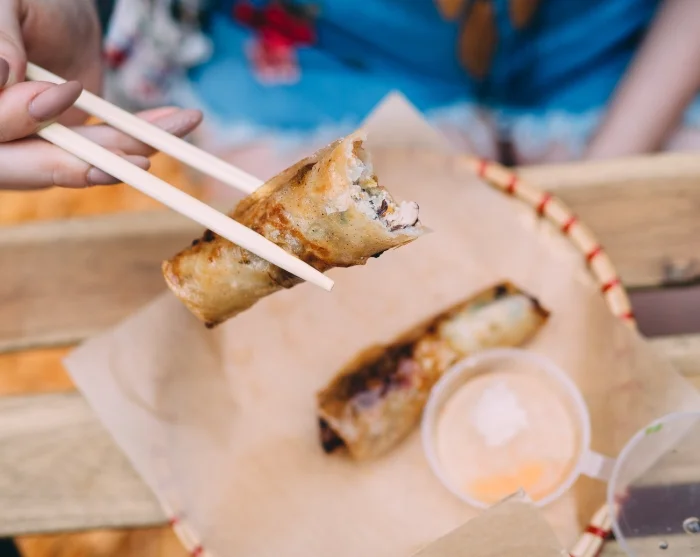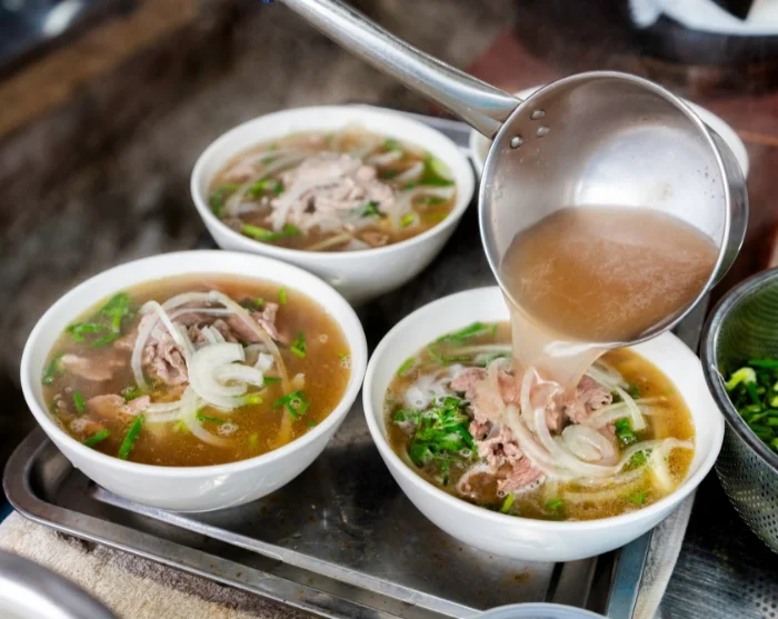 Derfra beveger du deg gjennom de trange smugene, og spiser deg gjennom herlighetene: sprø nem ran (vårruller), den verdensberømte pho (nudelsuppe), søte banh ran (friterte riskuler) og knasende stekte kyllinglår. Underveis går du nedover Hang Ma Street, der du får innblikk i lokal kultur og hverdagsliv, før du fortsetter til det sjarmerende bambushjørnet – et lite gatehjørne fylt med bambusprodukter og lokalliv.