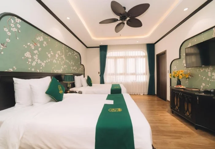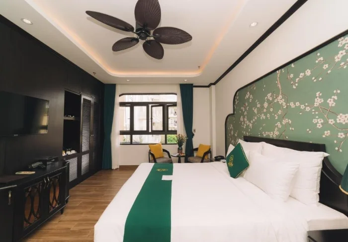 Som utgangspunkt bor du på et superior-rom som kombinerer moderne komfort med et hint av vietnamesisk eleganse. Rommene har store vinduer som slipper inn dagslys, detaljer i treverk og klassiske møbler som gir en varm og innbydende atmosfære. Særlig iøynefallende er veggpanelene med blomstrende kirsebærgreiner, som tilfører rommene et lokalt og kunstnerisk preg. Alle rom er utstyrt med en dobbeltseng eller to enkeltsenger, kjøleskap, TV, sikkerhetsboks, vannkoker, aircondition og eget bad med toalettartikler og hårføner. Gjennomtenkte detaljer gir deg et stille og rolig tilfluktssted hvor du kan slappe av etter dagens opplevelser.