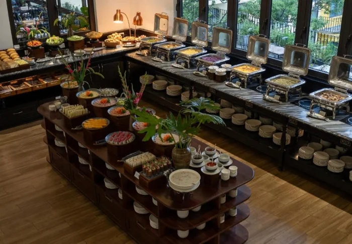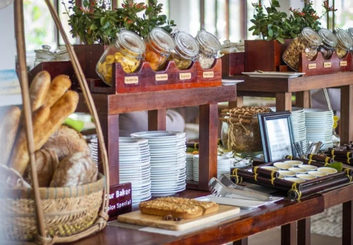 Hotellets restaurant, Mekong Medley Restaurant, serverer hver dag frokost, middag og buffetfrokost, i tillegg til á la carte-menyer med både klassiske retter fra Mekong-området og internasjonale favoritter. Resortet har også sitt eget European Bakery & Dessert Corner, hvor det daglig bakes ferskt brød, franske terter og deilige desserter.