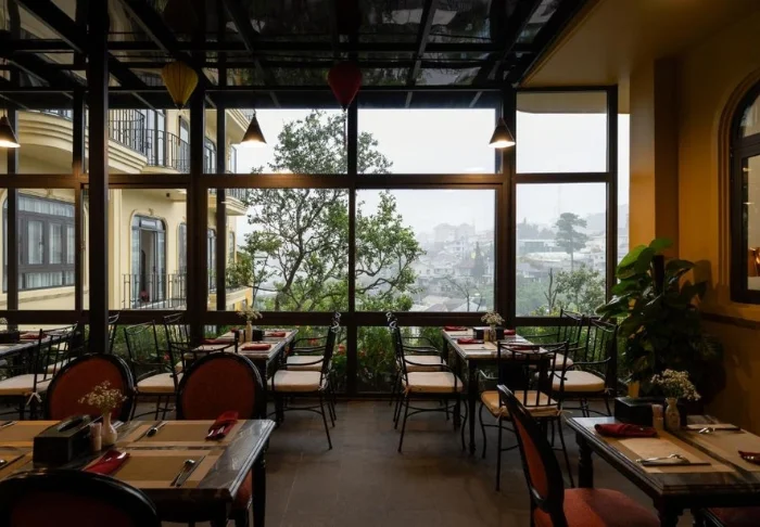 På hotellets restaurant sørger de flinke kokkene for at hotellets gjester alltid kan velge mellom et stort utvalg velsmakende retter som er tilberedt med lokale råvarer. Her serveres det både asiatiske og vestlige retter med utsikt over Sapas bølgende fjell.