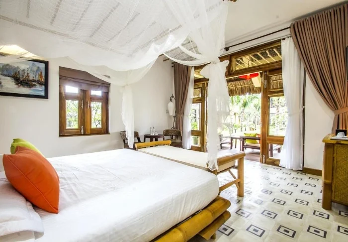 Tam Coc Garden Resort er en liten hyggelig resort med bare 16 rom. Alle rom er stilfullt og rustikt innredet og passer perfekt inn i omgivelsene. Her er det gjennomgående brukt naturmaterialer som tre, stein og bambus. Alle rom har aircondition, Wi-Fi, minibar, myggnett, safe, yogamatte og te- og kaffefasiliteter. På badet finner du badekar og regndusj samt toalettartikler, badekåpe, tøfler og hårtørker. Alle rom har dessuten egen terrasse, og hva er vel bedre enn å starte dagen nettopp her og se morgensolens stråler skinne på de omliggende fjellene og rismarkene? Hvis du liker yoga, kan du i stedet ta yogamatten under armen og finne ditt yndlingssted på resorten der du helt uforstyrret kan bringe kroppen i balanse mens solen langsomt står opp.