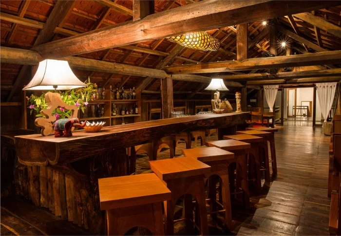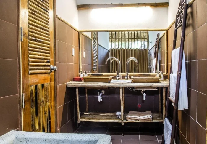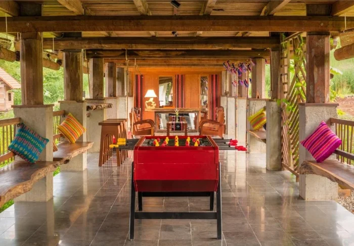 Resortet er økovennlig og bygget i naturlige og bærekraftige materialer. Mesteparten av møblene på resortet er laget av fint, mørkt tre på resortets eget snekkerverksted.