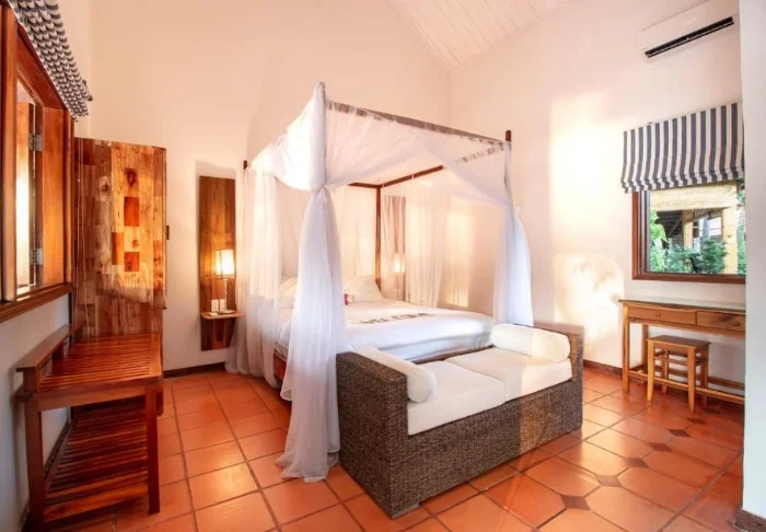 Du bor i en Garden Cottage, som du når via små stier gjennom hotellets frodige hage, omgitt av palmer og blomster. Fra terrassen foran rommet har du utsikt til din egen lille hage, hvor du kan være så heldig å finne modne pasjonsfrukter eller fargerike orkideer og hibiskus. Rommet er enkelt innredet med steingulv og store vinduer som slipper inn mye lys. I tillegg finnes det himmelseng med myggnett, aircondition og takvifte, Wi-Fi, minibar, kaffe- og tefasiliteter, sikkerhetsboks samt bad med regndusj, hårføner og toalettartikler – alt du trenger for et behagelig og avslappende opphold.