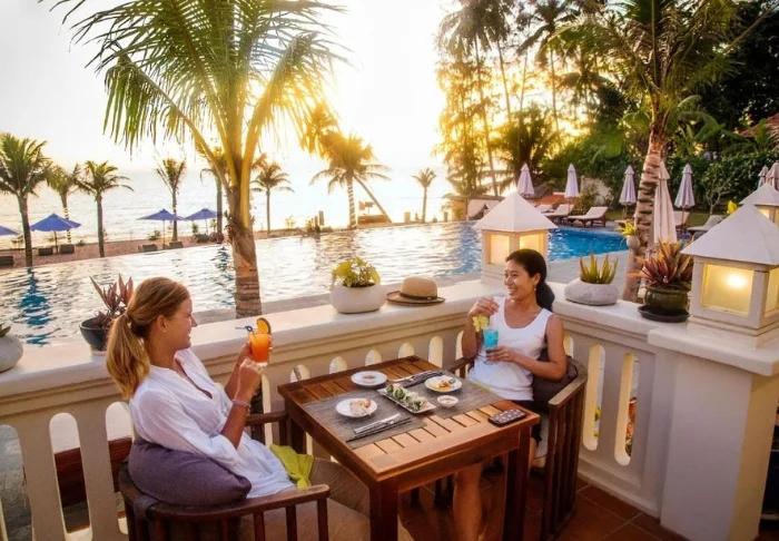 Resortens hovedrestaurant, Le Café, tilbyr en deilig frokostbuffet og à la carte-retter til lunsj og middag. På menyen er det både internasjonale og autentiske vietnamesiske retter. Le Salon i lobbyen serverer te, kaffe og kaker samt vin og cocktails. Poolbaren, La Piscine, tilbyr forfriskende drikkervarer og snacks, mens du på strandbaren kan spise en lett lunsj og ta deg en sen ettermiddagsdrink mens du skuer utover stranden der bølgene slår rolig inn mot land.