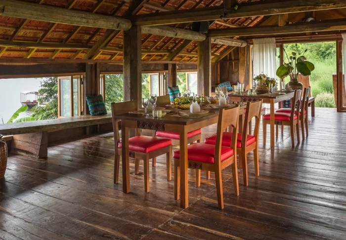 På resortets restaurant, Place de la Sol, står lokale kokker fra Thai-folket bak grytene, og alle råvarer er dyrket eller produsert i nærområdet. Her kan du glede deg til retter som gjenspeiler dalens ville natur og rike kultur, og byr på smaker du ikke finner andre steder. Nyt maten med utsikt over dalen og avslutt dagen med en drink eller et tradisjonelt danseshow i kveldsmørket.
