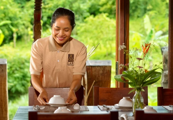 Lak Tented Camp er utviklet i tett samarbeid med lokalbefolkningen, og drives i stor grad av folk fra M’nong-minoriteten i de nærliggende landsbyene. De er varme, gjestfrie og nysgjerrige, og deres vennlighet blir ofte blant de sterkeste minnene gjestene tar med seg hjem. Servicen er kanskje ikke alltid strømlinjeformet, men viljen til å lære og utvikle seg er stor. Her blir du møtt med ekte interesse, og om du tilbyr litt engelskundervisning, deler de gjerne et par M’nong-ord tilbake.