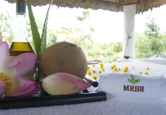 Etter en herlig dag i solen kan du skjemme deg bort med en avslappende behandling i spaavdelingen, som ligger spredt i små paviljonger med skjerming.
