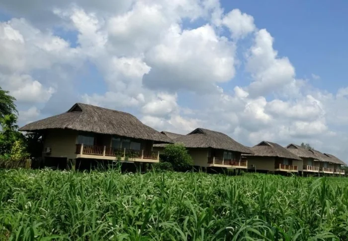 Du bor som standard i en deluxe bungalow bygget på påler. Innredningen er enkel med flislagt gulv, mørke tremøbler og store, lyse vinduer. Bungalowen har aircondition, Wi-Fi, TV, minibar, sikkerhetsboks og vannkoker. Badet har både dusj og hårføner. På din private balkong kan du nyte utsikten over rismarker og fjell med en kopp te eller kaffe.