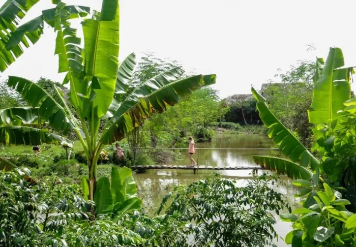 Etter en dag full av inntrykk kan du ta en dukkert i bassenget med utsikt mot rismarkene, eller finne skygge under en palme med en god bok i hånden.