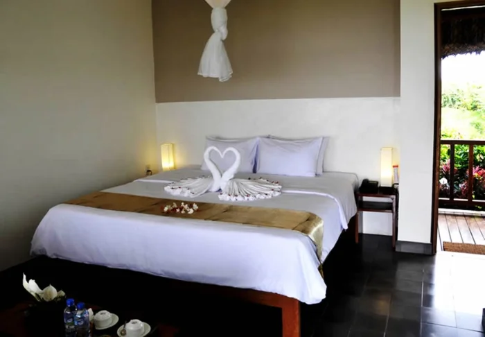 Her kan du slappe av i og rundt de tropiske bambushusene og nyte utsikten til rismarkene, den vakre hagen og de flotte fjellene. Den samme utsikten kan du beundre mens du spiser frokost på balkongen din eller på resortens utendørsrestaurant.