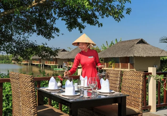 Mekong Riverside Boutique Resort & Spa ligger rett ved Mekongelven i Cai Be. Resortet består av 25 bungalower med til sammen 50 rom, omgitt av fruktplantasjer og grønne hager. Her får du et fredelig utgangspunkt midt i Mekongdeltaets levende hverdag med flytende markeder og små landsbyer.