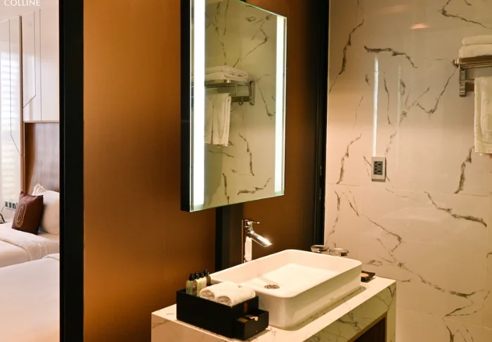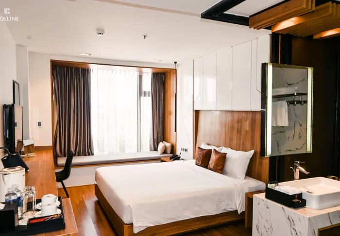 Når sulten melder seg, har du flere alternativer på hotellet. Restauranten serverer både vietnamesiske retter og internasjonale klassikere, og i hotellets bakeri kan du ta med deg nybakt brød, kaker eller en god kopp kaffe. Senere på dagen kan du slå deg ned i lobbybaren for en drink før du igjen beveger deg ut i byen, hvor enda flere smaksopplevelser venter rett rundt hjørnet.