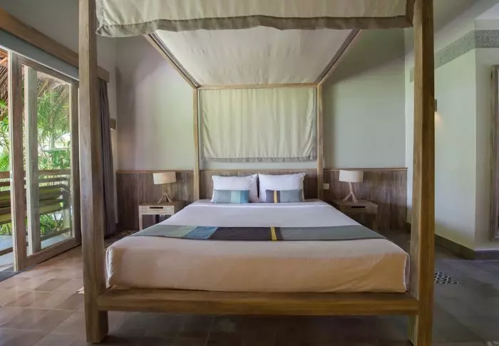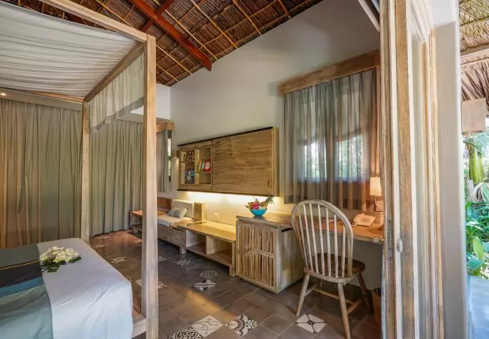 Rommene er smakfullt innredet, med en flott kombinasjon av naturfarger og innslag av kontrastfarger på f.eks. puter og tepper. Badene har delvis åpent tak, slik at du kan føle brisen og nyte alle hagens dufter. Alle rom har aircondition, minibar, te- og kaffefasiliteter, safe, Wi-Fi, flatskjerm-TV, myggnett og egen veranda.