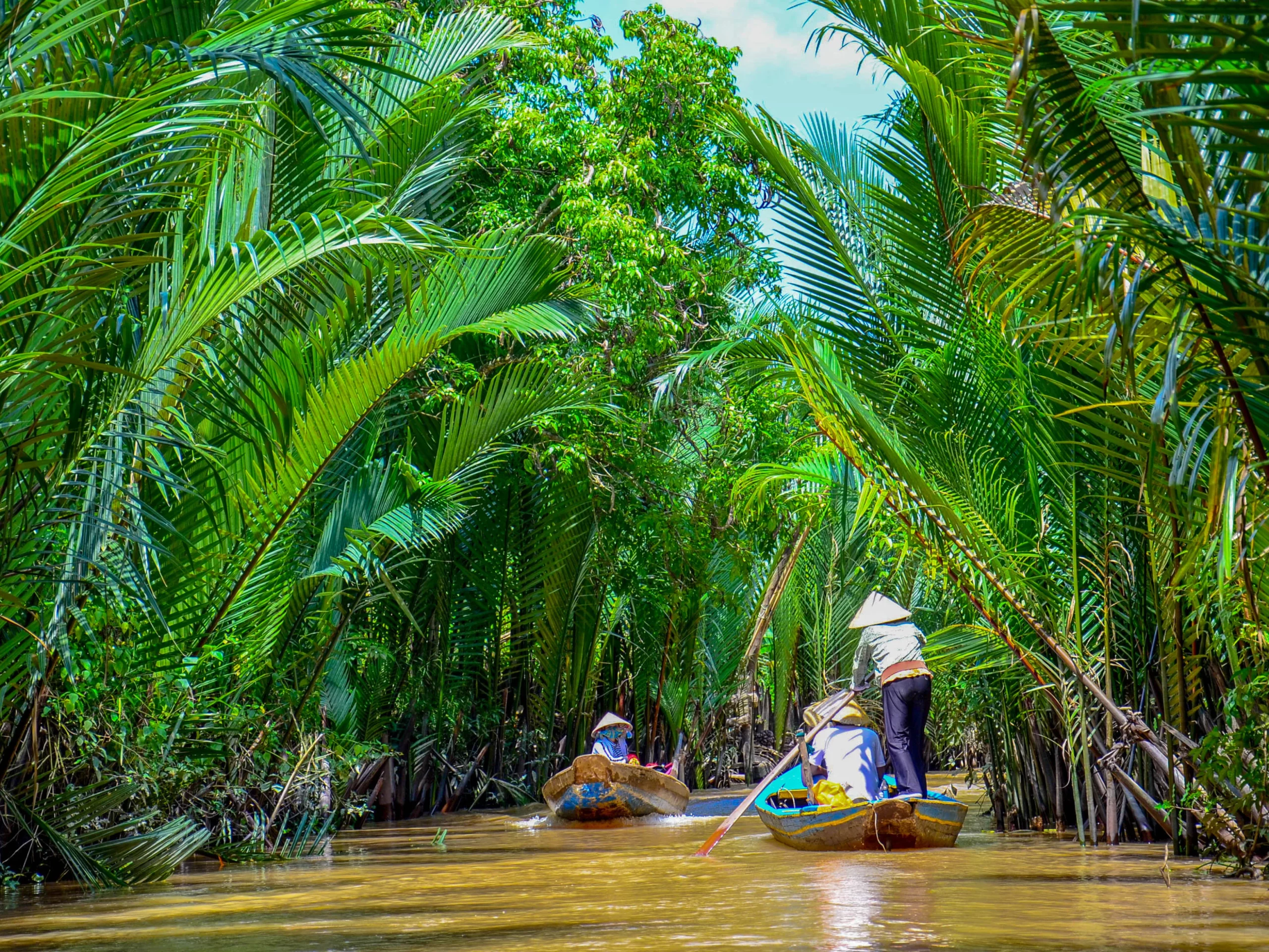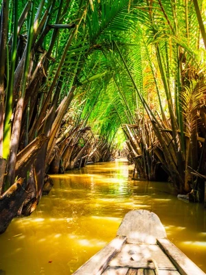 På en heldagstur kan du oppleve Mekongdeltaet fra en båt. Mekongdeltaet er et frodig område som dekker knapt 40.000 m2, der en stor del er dekket av vann. Mekongelven løper 4.500 km gjennom 6 land fra sitt utspring til deltaet ved kysten sør for Ho Chi Minh City. På seilturen kan du for eksempel besøke noen av de små lokale håndverkerne og produsentene og blant annet se en kokosnøttplantasje.
