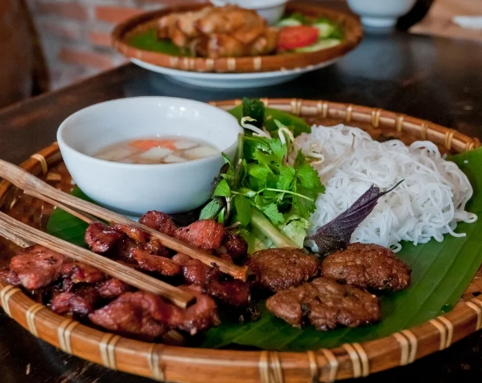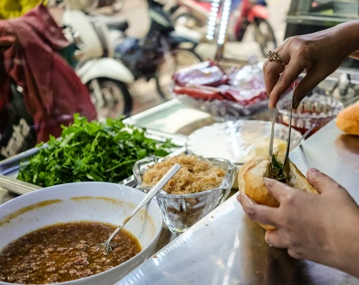 Til lunsj kan du gå på jakt etter Hanois berømte gatemat. Prøv en dampende bolle pho, nyt duften av grillet bun cha eller ta med en sprø banh mi på veien.