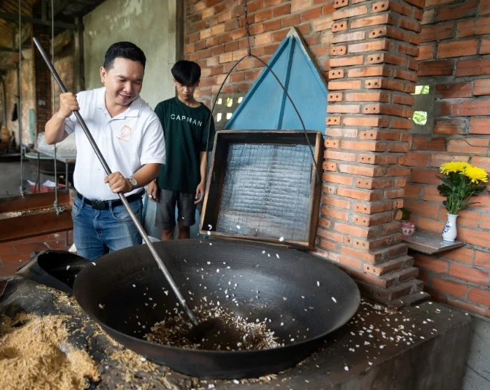 Båtturen fører deg videre til en fredelig øy midt i Mekongelven, der du nyter en vietnamesisk lunsj laget av ferske, lokale råvarer, omgitt av frodig natur og elvens rolige liv.