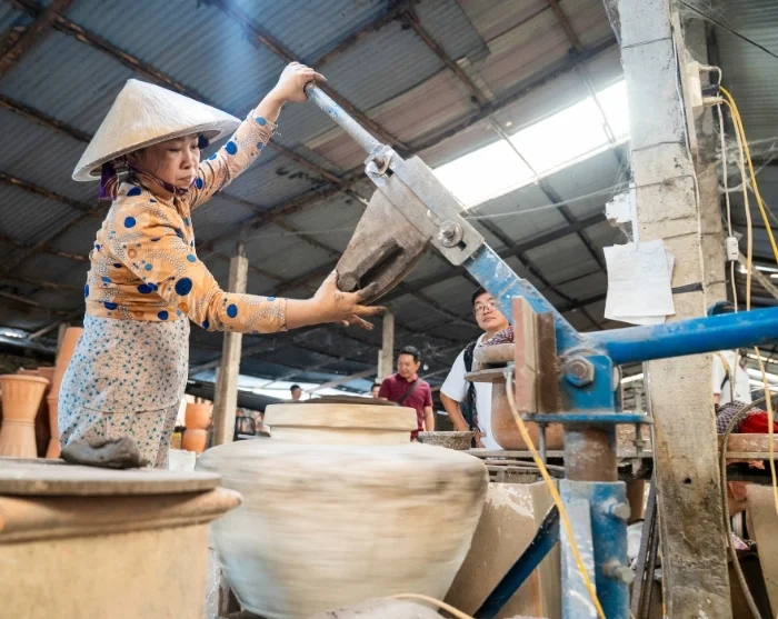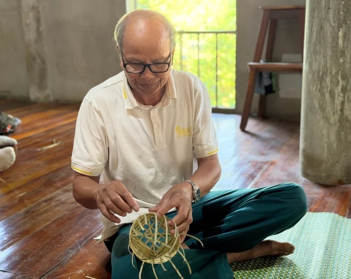 Senere besøker du et eldre ektepar og får et innblikk i Muong-folkets tradisjonelle håndverk som veving og bambusfletting, som har blitt videreført gjennom generasjoner. Bambusarten luong brukes blant annet til å lage kurver, fiskefeller og matter. Hvert mønster og hver teknikk gjenspeiler en del av Muong-folkets kulturarv, og produktene fungerer både som bærekraftige alternativer til moderne materialer og som unike suvenirer. Du får også prøve deg på håndverket selv og fletter din egen lille kurv, som du kan ta med hjem som suvenir.