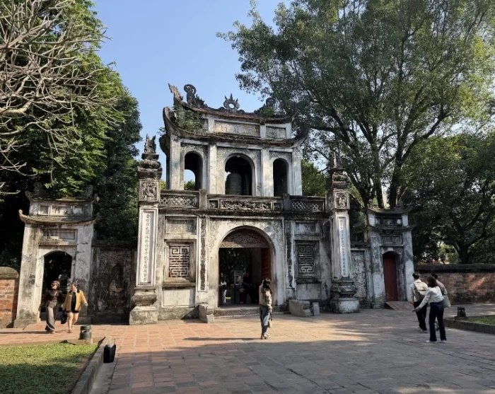 Deretter går turen videre til Litteraturens Tempel – et fredfylt kompleks oppført på 1100-tallet til ære for den kinesiske filosofen Konfucius. Med nærmere tusen år på bakken er tempelet et sjeldent og godt bevart eksempel på tradisjonell vietnamesisk arkitektur, med søyleganger, dammer og grønne gårdsrom. Her kommer unge studenter fortsatt for å be om hell før eksamenene sine.