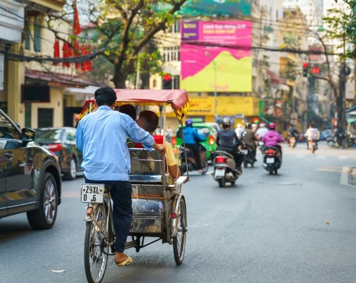 Turen fortsetter med en tradisjonell sykkeltaxi – også kalt cyclo – gjennom det gamle kvarterets labyrint av smale gater og livlig handel. Det gamle kvarteret er kjent for sine 36 gater, som opprinnelig ble oppkalt etter varene som ble solgt der: bambus, silke, papir og blikk. Mange av gatenavnene er bevart den dag i dag, og stemningen oser av lokal sjarm, med hanoianere som handler, småprater og serverer dampende pho fra gatekjøkkenene.