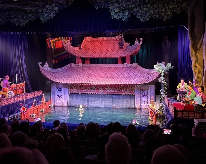 Dagens sightseeingtur avsluttes med en forestilling i et vanndukketeater – en flere hundre år gammel vietnamesisk tradisjon der dukker danser på vannets overflate til levende musikk og klassiske fortellinger.
