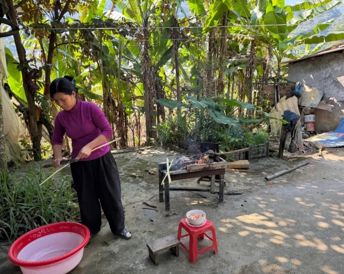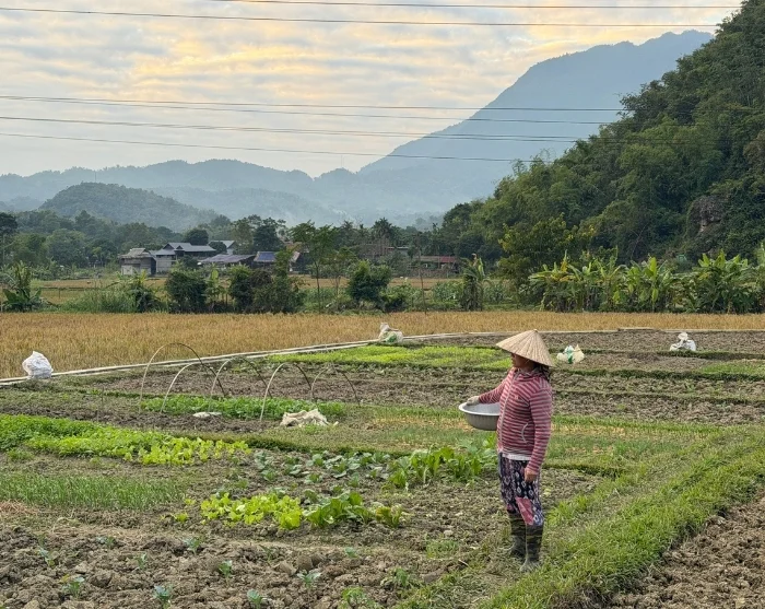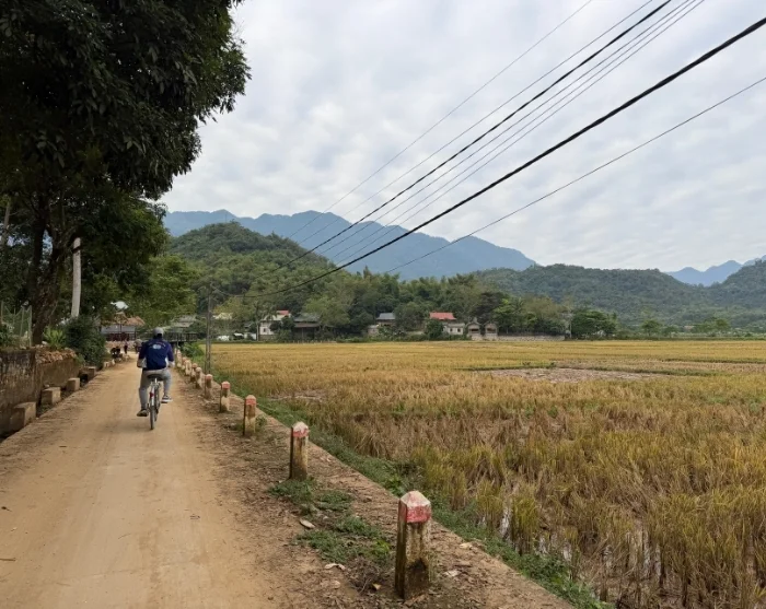 Sykkelturen fortsetter deretter til en lokal familie i landsbyen Mai Trung, hvor du blir ønsket velkommen i hjemmekoselige omgivelser. Her får du innblikk i livet på landsbygda når du deltar i sesongbaserte aktiviteter som arbeid i rismarkene, hagearbeid eller mating av fisk og fjærfe.