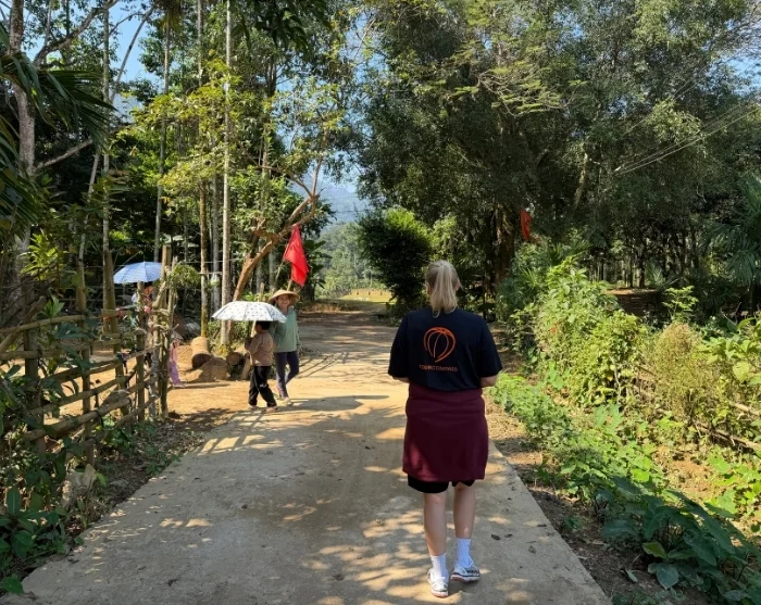 Ved ankomst blir du tatt imot av en lokal representant fra landsbyen. Sammen går dere en tur gjennom landsbyen, hvor du får et nært møte med det rolige hverdagslivet. Du passerer marker, lokale stilt-hus, hilser på familiene og møter barna i landsbyen, som sjenert vinker til deg. Du besøker også landsbyens forsamlingshus, hvor beboerne holder møter, og hvor barna kan komme for å gjøre lekser.