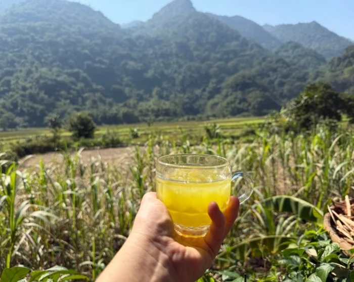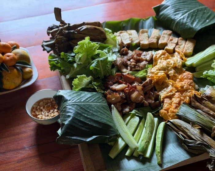 Etter båtturen besøker du et lokalt hjem, hvor du sammen med vertskapet er med på å tilberede tradisjonelle retter. Lunsjen serveres ved et pent dekket bord med lokale spesialiteter, og måltidet deles i fellesskap – en flott måte å få et autentisk innblikk i områdets matkultur på. Du får tid til en prat med vertskapet og til å lære mer om Muong-folkets hverdag, kultur og tradisjoner.