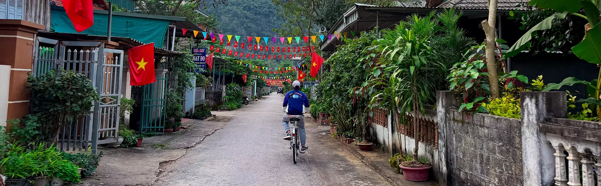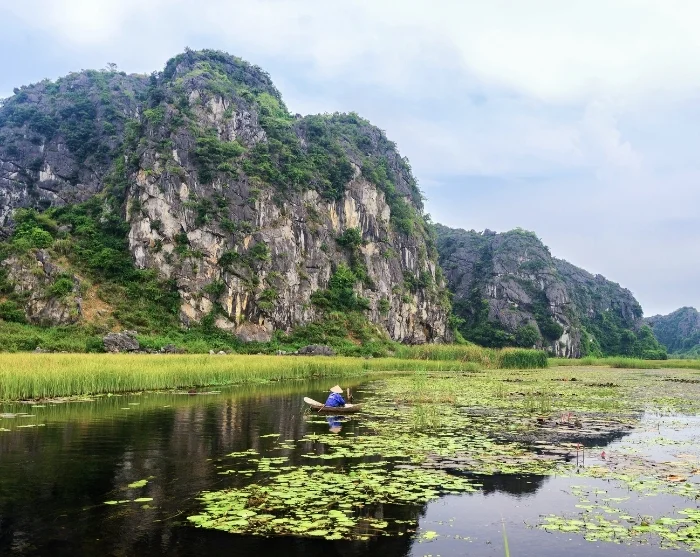 Videre går reisen til Ninh Binh, ofte omtalt som “Ha Long-bukten på land”. Her sykler du gjennom det frodige landskapet til naturreservatet Van Long, lager lunsj sammen med en lokal familie og fortsetter deretter med en rolig båttur i sampan gjennom Trang An-hulene og forbi majestetiske kalksteinsklipper.