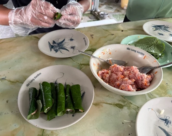Etterpå inviterer familien deg med på kjøkkenet til et uformelt matlagingskurs der du får en introduksjon til det vietnamesiske kjøkkenet og selv tar del i tilberedningen. Opplevelsen rundes av med en hjemmelaget lunsj som nytes i avslappede omgivelser.
