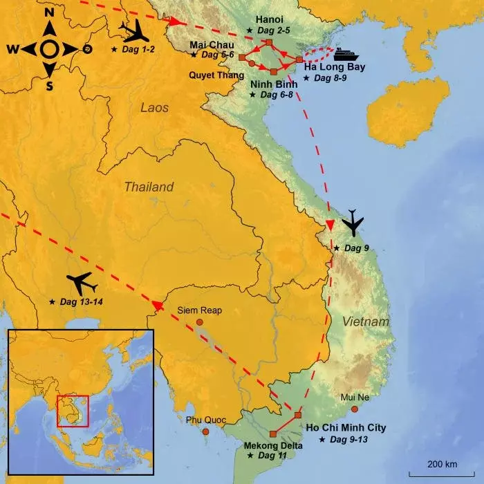 Du kan forlenge reisen med badeferie i Mui Ne eller på øya Phu Quoc. Det er også mulig å kombinere Vietnam med et opphold i Siem Reap i Kambodsja, inkludert et besøk ved Angkor Wat.