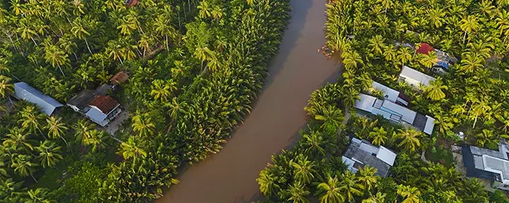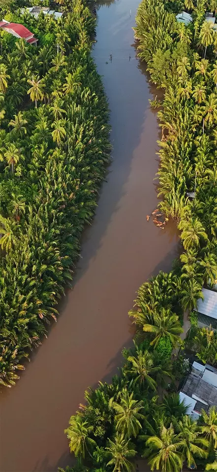 Du rekker knapt å komme ut av Ho Chi Minh City før landskapet begynner å forandre seg. Langs veien ser du grønne marker og passerer små elver og kanaler som slynger seg gjennom det flate landskapet. Det er ikke uvanlig å se lokale bønder som arbeider på markene, mens vannbøfler beiter langs veikanten, og små boder frister med fersk frukt.