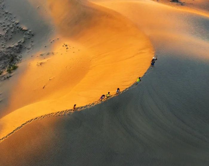 Mui Ne er også berømt for sine enorme røde og hvite sanddyner. Her kan du se hvordan de stadige vindene fra havet former den røde og blekgule sanden til flotte Sahara-formasjoner.