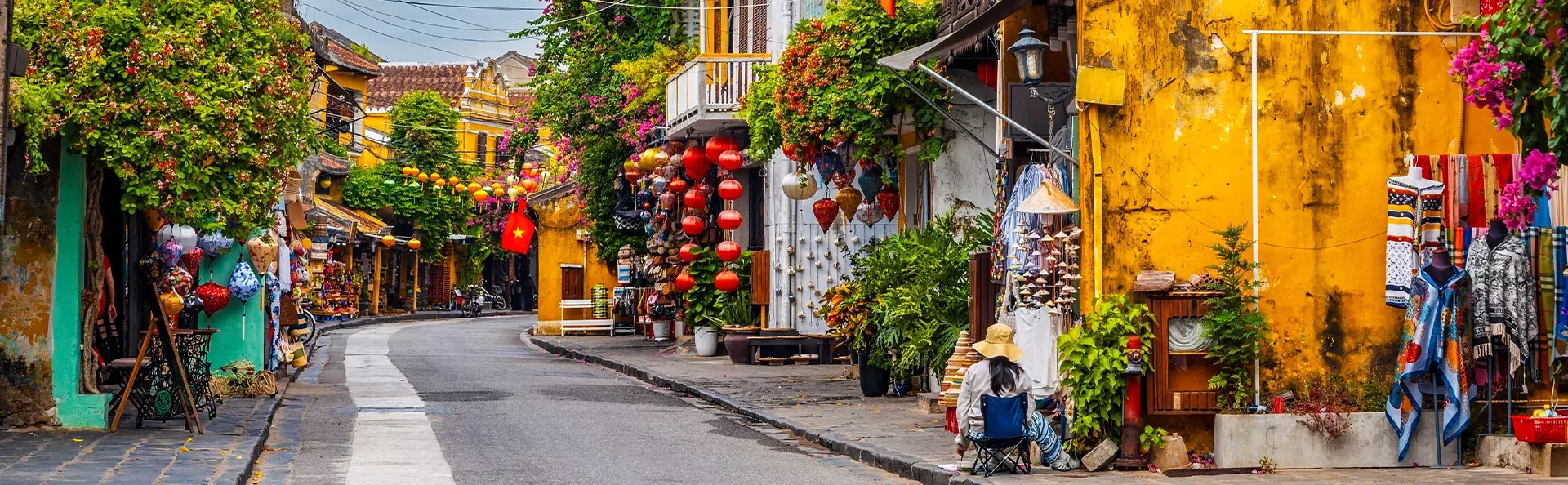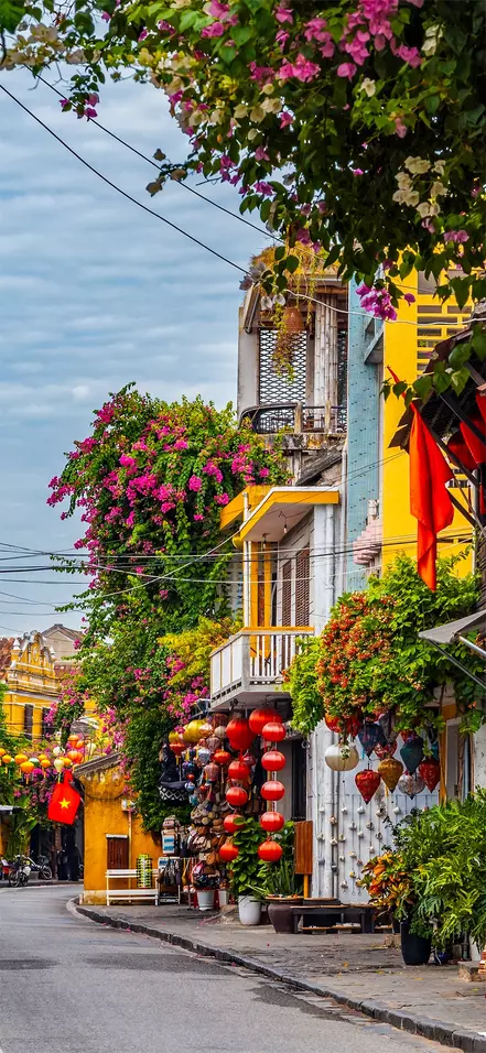 Bortenfor elven brer det seg ut en labyrint av små, stemningsfulle gater. Her møtes du av en fargerik blanding av japanske trehus, kinesiske forsamlingshus, franske kolonitidsbygninger og de karakteristiske kjøpmannshusene. Fargerike lanterner henger som girlandere over gatene og skaper en helt spesiell stemning, spesielt når mørket faller på. Butikker, gatematboder, kafeer og små restauranter ligger som perler på en snor og inviterer til avslappende øyeblikk og nysgjerrige oppdagelser.