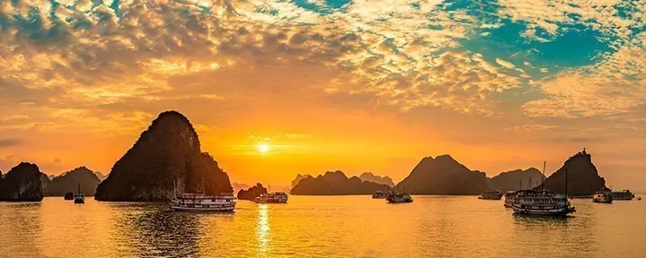 Du starter i den vietnamesiske hovedstaden Hanoi, hvor du skal utforske byens unike templer og oppleve sjarmen og folkelivet i de travle gatene i gamlebyen. Du skal seile forbi hundrevis av grønne kalksteinsklipper i Ha Long-bukten på et minicruise, og underveis får du muligheten til å svømme på den gylne stranden på Ti Top-øya og beundre den storslåtte utsikten over bukten fra øyas utsiktspunkt.