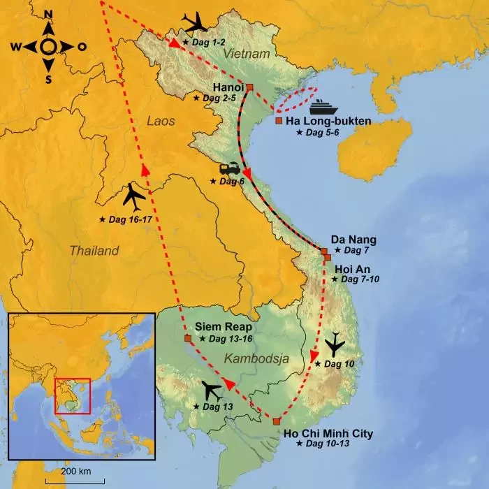 På denne 17 dager lange reisen får du Vietnams klassiske severdigheter og UNESCOs kulturarv i Angkor Wat presentert av dyktige, lokale engelsktalende guider. Underveis er det lagt inn tid til fri disposisjon slik at du også kan gå på oppdagelse på egen hånd. Du starter i det rolige nord i den flotte hovedstaden Hanoi, hvor du opplever kontrastene mellom den moderne og den gamle bydelen. UNESCOs natur- og kulturarv kommer under huden i Ha Long-bukten og i Hoi Ans gamle gater, mens du får innblikk i samtidshistorien i Cu Chi-tunellene, symbolet på Viet Congs geriljakrig mot amerikanerne. Ho Chi Minh City er Vietnams økonomiske dynamo og kontrasten til Hanoi er klart merkbar. I Mekong-deltaet opplever du Vietnams frodige spiskammer med flytende markeder på vann og de grønne rismarkene og fruktplantasjene på land.