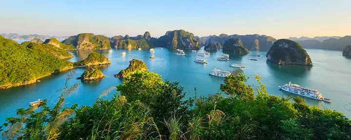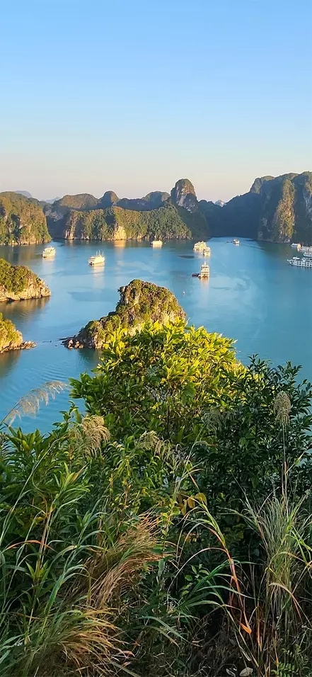 Fra Hanoi går turen østover til Ha Long-bukten, hvor du legger ut på et minicruise blant kalksteinsklipper. Du besøker Ti Top-øya med mulighet for bading og flott utsikt fra toppen, utforsker en imponerende dryppsteinsgrotte, overnatter om bord og våkner til morgensol over det smaragdgrønne vannet.