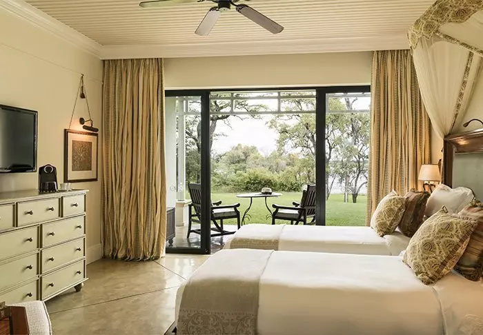 Her er det 173 som er fordelt på små hus i en nesten parklignende hage med 6-8 rom i hvert hus. Hvert rom har egen terrasse eller balkong med utsikt over Zambezi-elven og dessuten aircondition, sikkerhetsboks og TV.